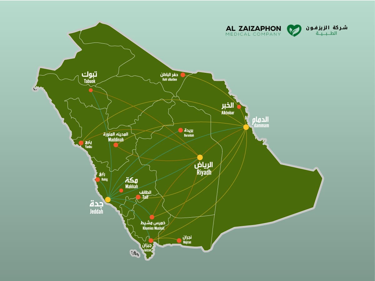 The company’s head office and warehouse facilities are located in Riyadh, with branches in Dammam, Eastern Province, and Jeddah, Western Province, Saudi Arabia. Al Zaizaphon is rapidly expanding and is committed to being part of the development and progress of the healthcare sector within the Saudi Vision 2030.