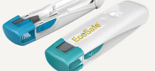 The EcoSafe® reusable autoinjector works with a 1mL EcoSafe® safety syringe – the only solution that pairs a safety syringe with a reusable autoinjector. After use, only the syringe is discarded, helping to reduce waste and support sustainability goals.